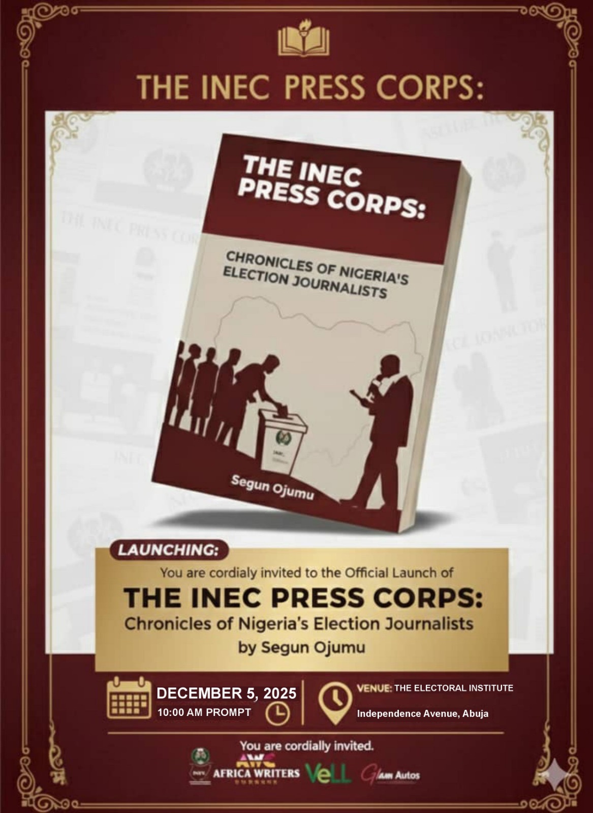 A compelling new publication that offers an unfiltered look into the work, risks, and impact of Nigeria’s frontline election reporters is set for public unveiling on Friday, 5 December 2025, in Abuja. The book, The INEC Press Corps: Chronicles of Nigeria’s Election Journalists, written by media consultant and Chairman of the INEC Press Corps, Segun Ojumu, presents an insider view of the electoral space through the eyes of those who document it.