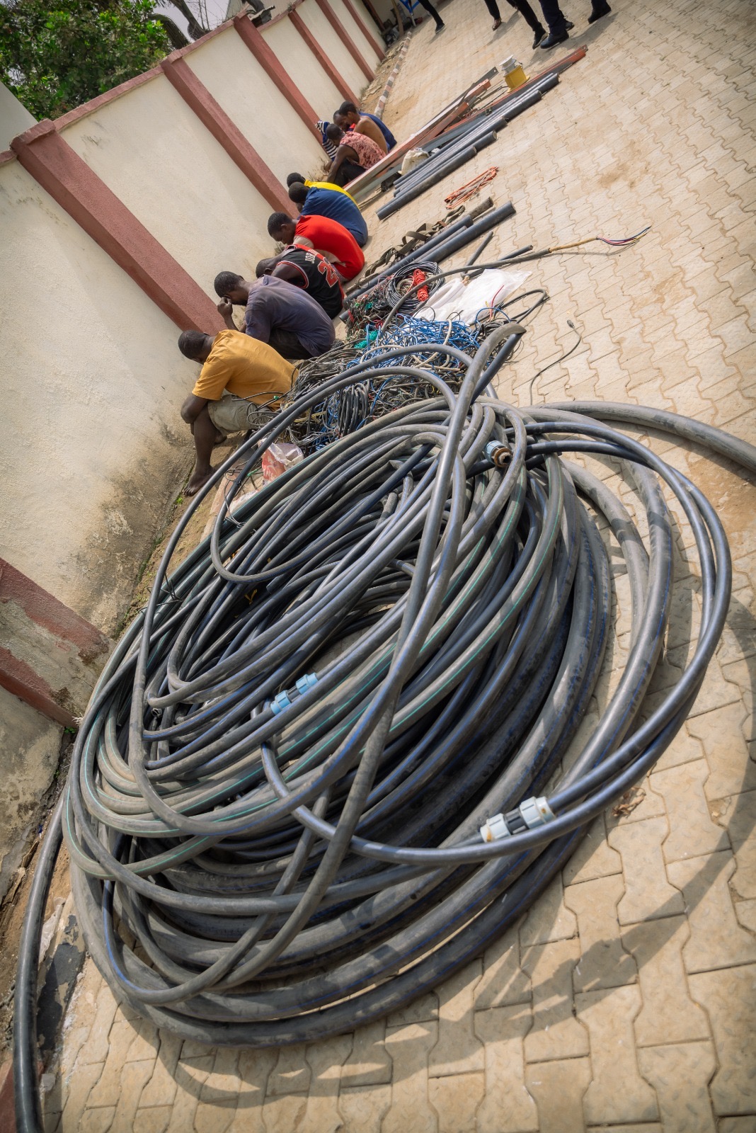 Among them was Suleiman Ibrahim, 31, from Dalla, Kano State, identified as a buyer of vandalised items, who was arrested at Jabi Park with large quantities of armoured cables, a heavy-duty hacksaw, pulling ropes, water pipes, and other exhibits. Others arrested included Libras Umar, 25, from Zaria; Umar Rabiu, 18, who was apprehended at Berger Junction with vandalised cables; Muktar Yusuf, 22; Ibrahim Haruna, 18; and one Ezekiel, 27, all allegedly linked to vandalism and theft of power and communications infrastructure.