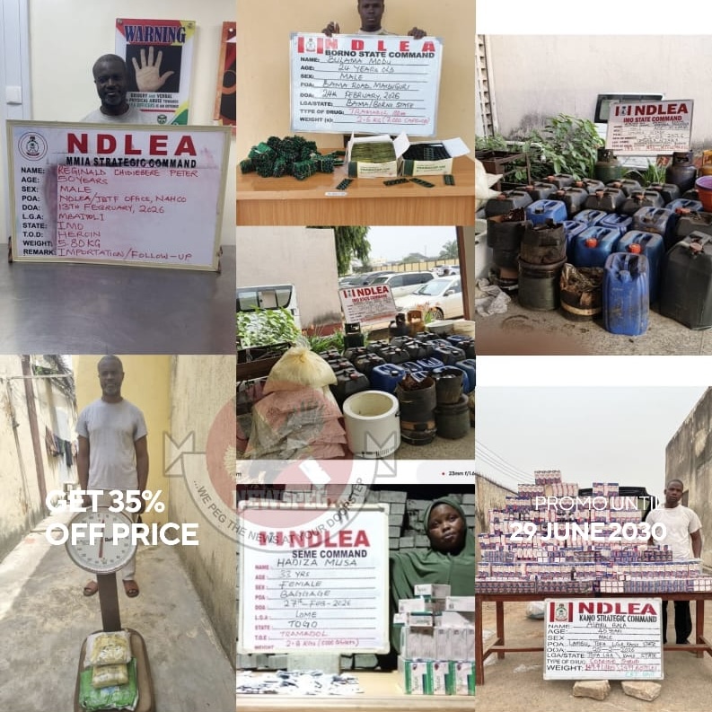 Commending officers and men of the MMIA, Seme, Lagos, Imo, Borno, Kano, Katsina, Taraba, Osun and FCT Commands for the week’s arrests and seizures, the Chairman and Chief Executive Officer of NDLEA, Brig. Gen. Mohamed Buba Marwa (Retd), praised their persistence and professionalism. He also applauded commands nationwide for maintaining a fair balance between drug supply reduction and drug demand reduction efforts.